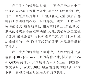螺旋輸送機(jī)的螺旋葉片有實體螺旋面、帶式螺旋面和葉片螺旋面三種形式,其中,葉片式螺旋面應(yīng)用相對較少,主要用于輸送粘度較大和可壓縮性物料,這種螺懸面型,在完成輸送作業(yè)過程中,同時具有并完成對物料的攪拌、混合等功能。