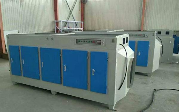 三、惡臭氣體利用排風設備輸入到本凈化設備后,凈化設備運用高能UV紫外線光束及臭氧對惡臭氣體進行協同分解氧化反應,使惡臭氣體物質其降解轉化成低分子化合物、水和二氧化碳,再通過排風管道排出室外。